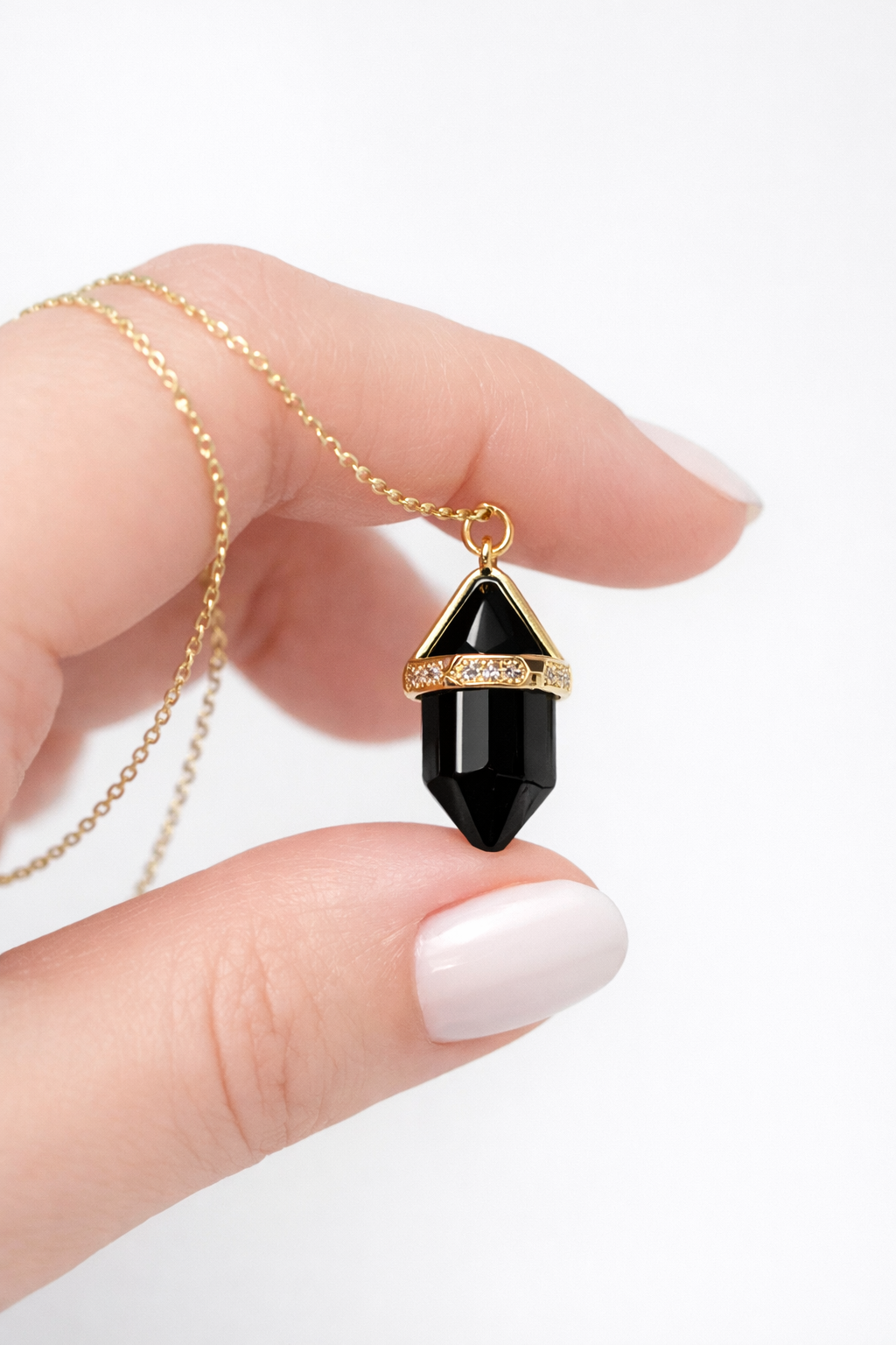 May wearing this elegant onyx necklace bring you confidence, energy, and protection on your journey.